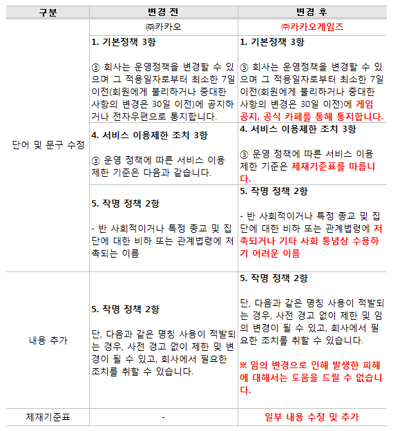 ■카카오게임즈 게임서비스 운영정책 개정 사항